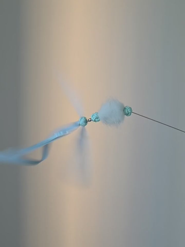 Summer Dance floats and twirls with effortless grace — just like a dragonfly in warm evening air. With soft feathers, flowing ribbons, and a plush center puff, it’s designed for cats who love the chase, the leap, and the thrill of something just out of reach. Every flick sends it into a graceful spin, turning playtime into a quiet kind of magic.