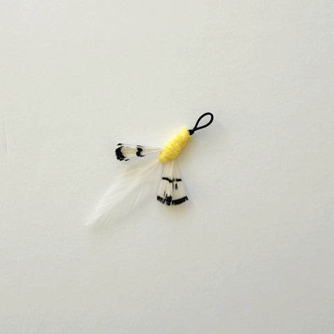 Lemonwing flutters like a tiny butterfly caught in a breeze. With pale yellow fluff, delicate white feathers, and bold wingtip accents, it’s designed to catch your cat’s eye — and never let go. Lightweight and airy, it spins, dips, and floats with every flick, making it ideal for cats who love to chase things that feel alive.