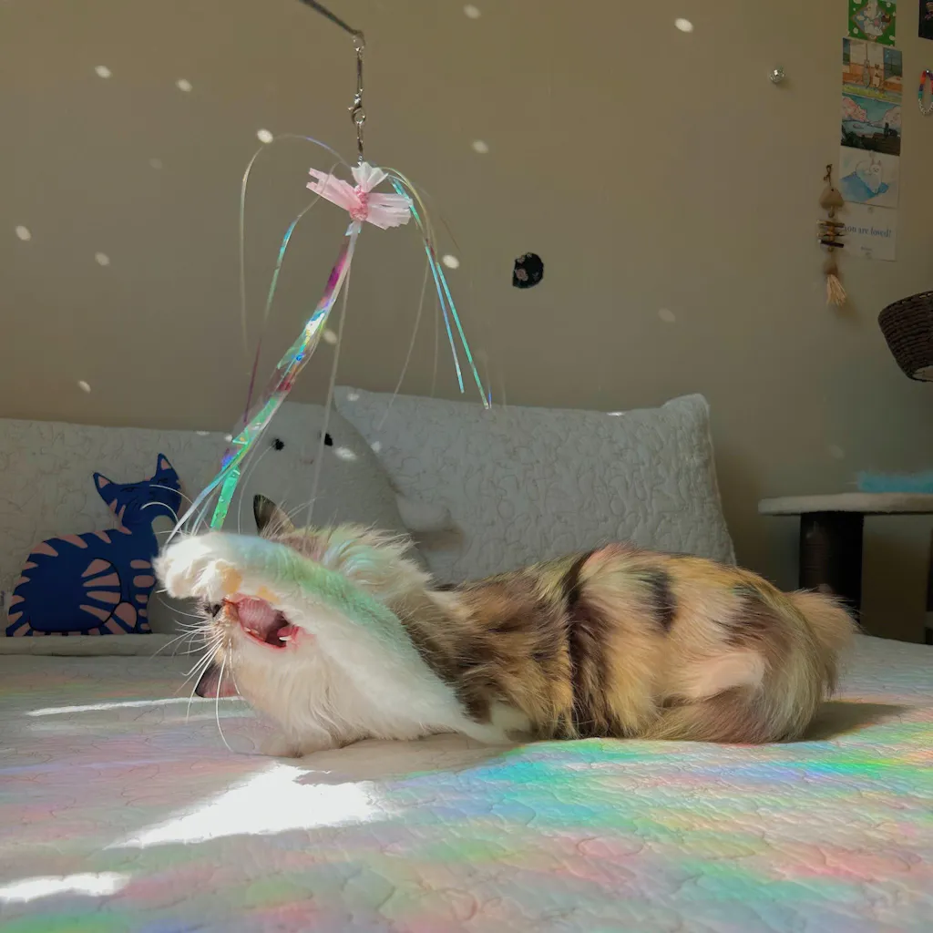 This is such a pretty toy and my cat goes crazy for the iridescent strings!